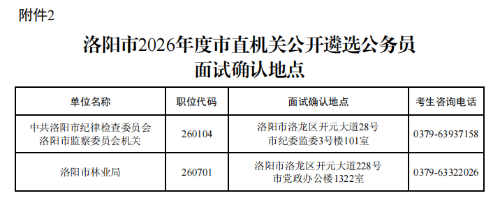 2.洛阳市2026年度市直机关公开遴选公务员面试确认地点