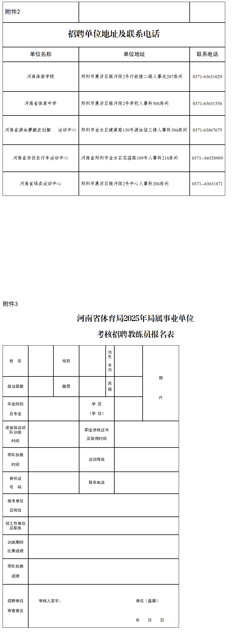 附件:1.河南省体育局局属事业单位2025年度考核招聘教练员岗位信息表